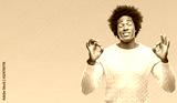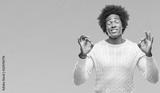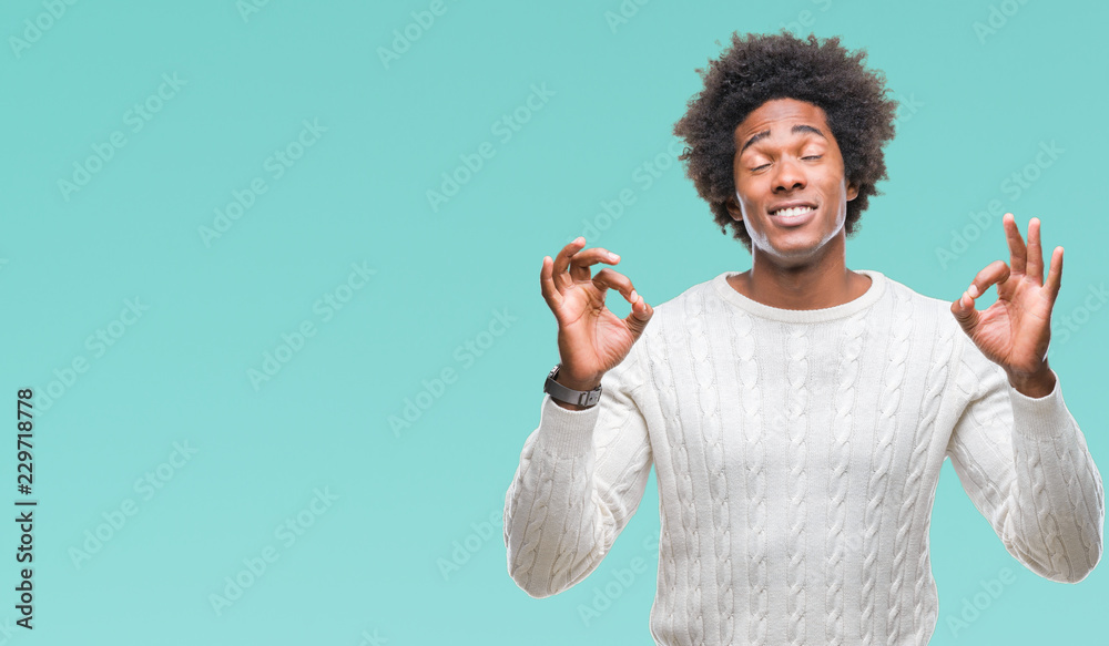 Afro american man over isolated background relax and smiling with eyes closed doing meditation gesture with fingers. Yoga concept.