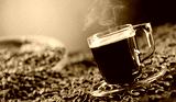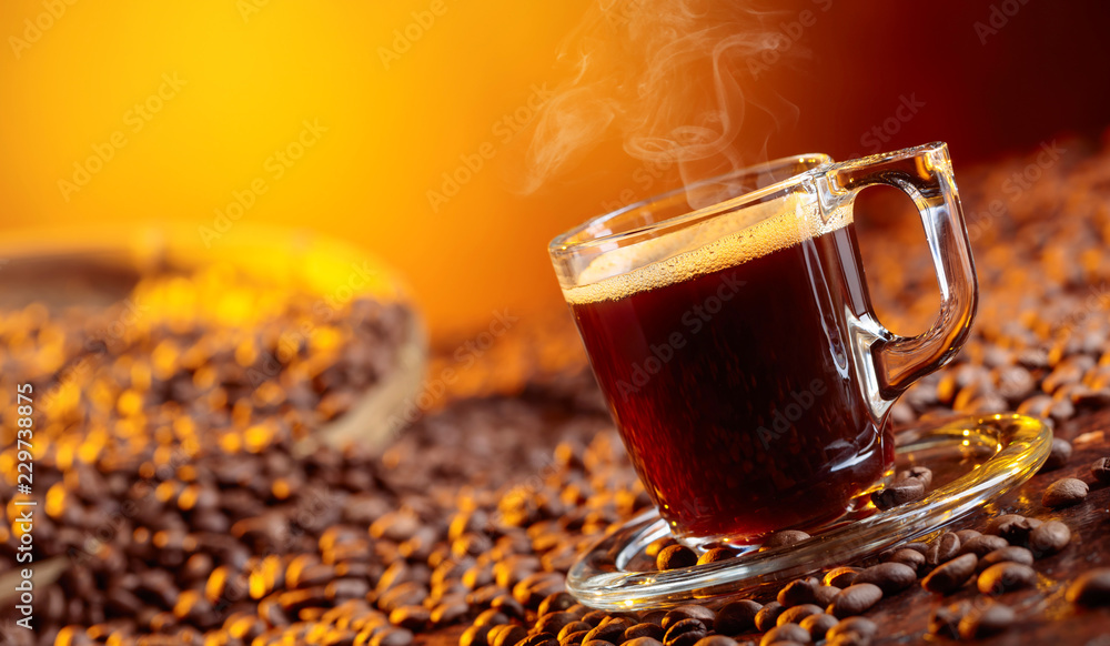 Espresso coffee cup with coffee beans.