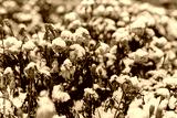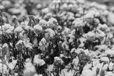 The first snow fell on orange and yellow flowers. Flowers freeze and die from the first frost.