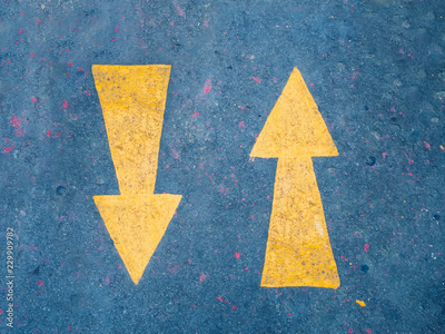 Arrow Sign Yellow Paint on Street asphalt Signage