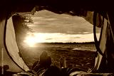 view from the tent at sunset