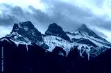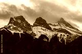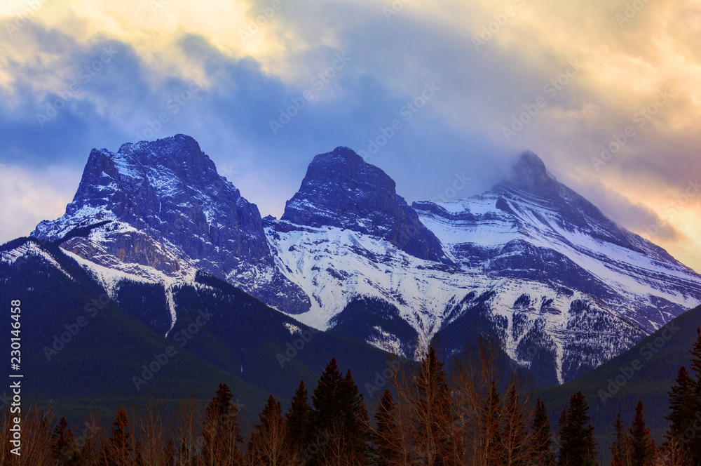 Sunset Over Famous Three Sisters Mountain Peaks in Canmore, Canada