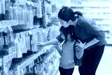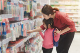 Back to school concept, Young asian mother or parent and little girl or pupil buying school supplies in store, Selective focus
