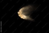 Dry river sand explosion. Golden colored sand splash against black background.