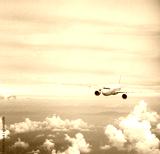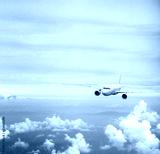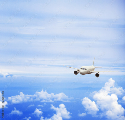 airplane in blue sky, travel concept