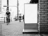 Mock up signboard Shop front on street with blur people Urban lifestyle