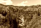 Steam locomotive train crossing the Takiya bridge on Tadami line with beautiful autumn season.