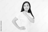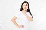 Portrait asian beauty woman face isolated on white background. Japanese women make up and hair health. Copy space. Healthy skin care.