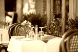 Small table set for dinner in outdoor cafe in Little Italy neighborhood in downtown Manhattan, New York City