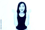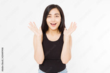 Surprised shocked excited asian woman face isolated on white background. Young asian girl in summer t shirt. Copy space