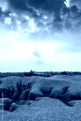 A rocky mountain or pile of fine white stone, which was mined from the mining process