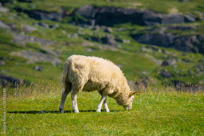 Schaf auf der Weide auf den Lofoten in Norwegen
