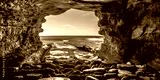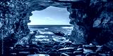 Rock cave on the sea with view of ocean and sky