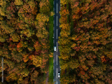 Luftaufnahme Aerial Drohnenaufnahme - Herbstwald mit Straße von Oben