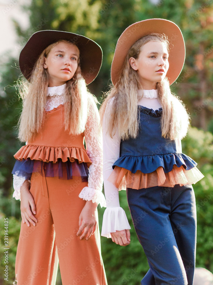 portrait of two girls of girlfriends on a summer nature