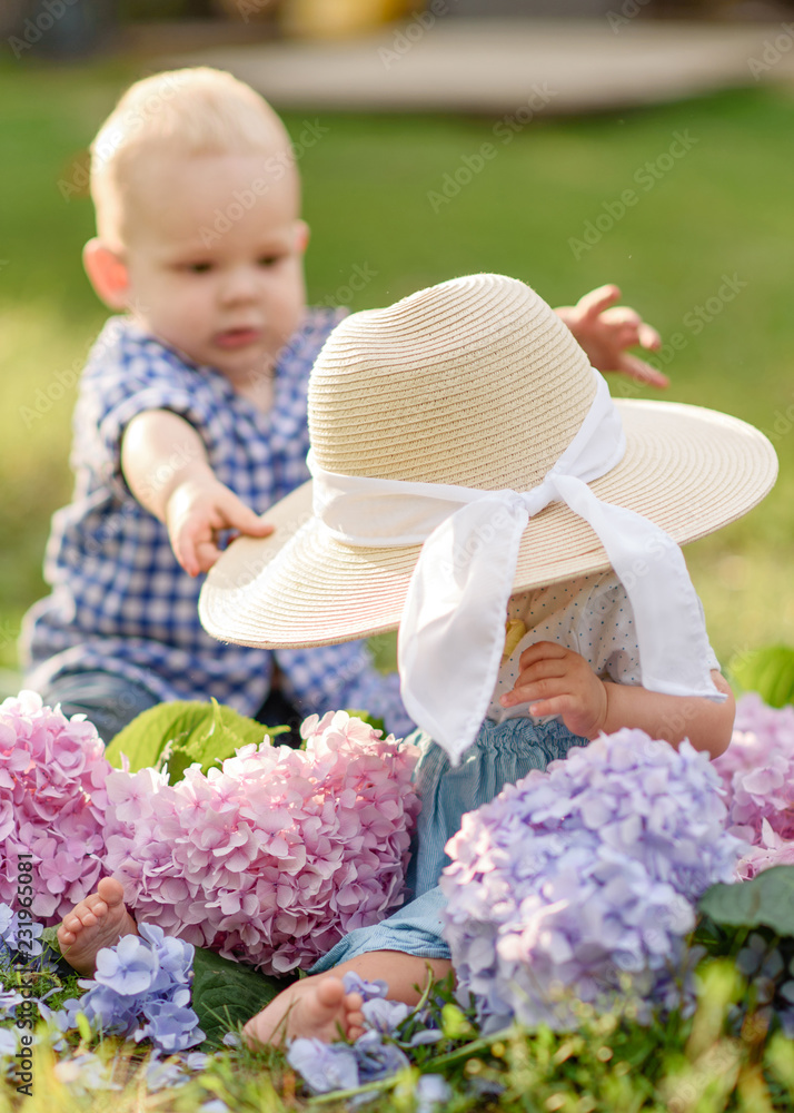 Portrait of a boy and girl in summer