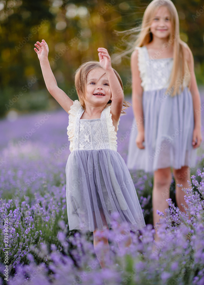 portrait of two sisters in a lavender field