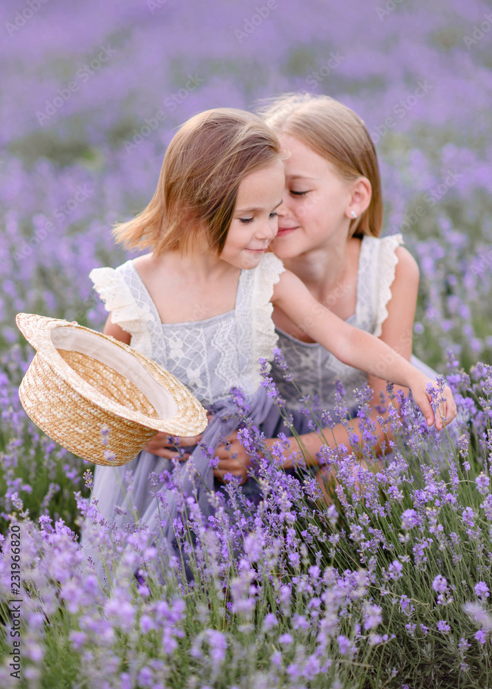 portrait of two sisters in a lavender field