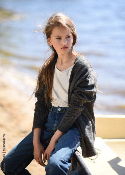 portrait of little girl outdoors in summer