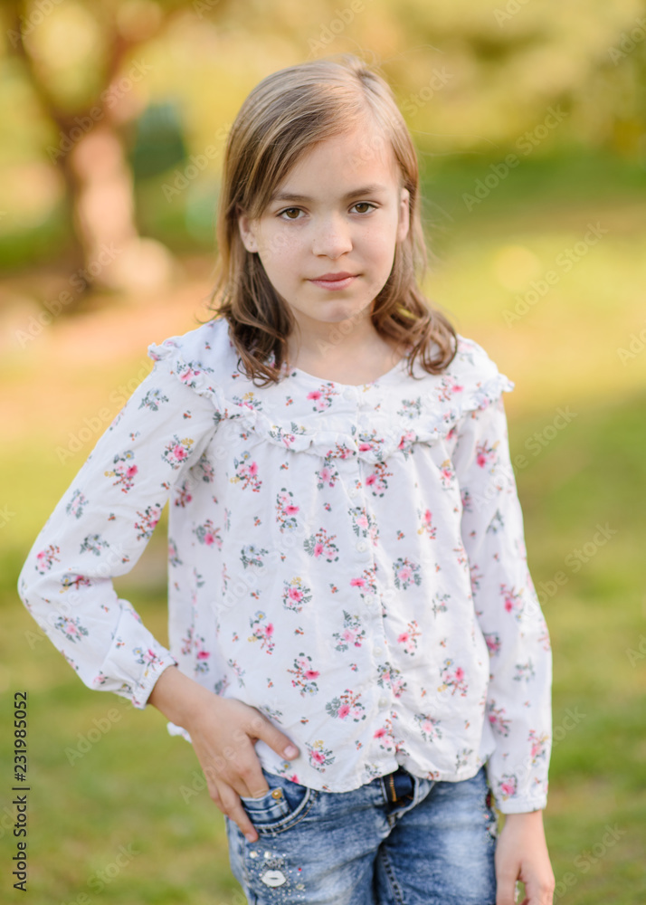 portrait of little girl outdoors in summer