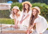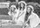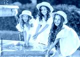 portrait of three girls girlfriends in nature