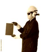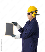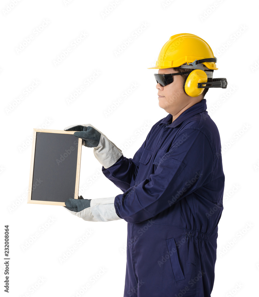 Full body portrait of a worker in Mechanic Jumpsuit isolated on white background