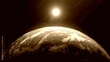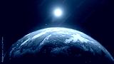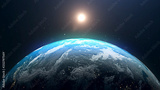 Planet Earth and sun. The sun is rising over World shading atmosphere, shading night to day 3D rendering.
