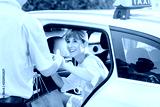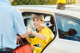 Taxifahrer hilft Frau beim Aussteigen aus dem Taxi