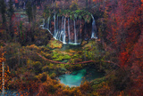 Beautiful waterfall autumn in Plitvice National Park, Croatia