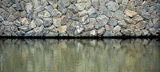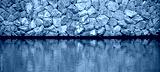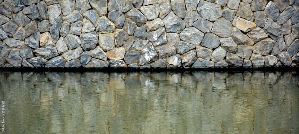 River coast with stones. Stone embankment