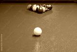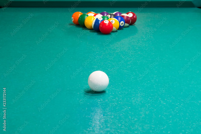 table for billiards with multi-colored balls, close-up