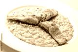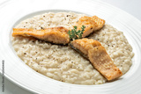 Dish of Parmesan risotto with fish fillet