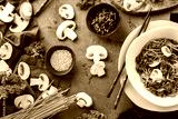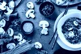Buckwheat soba noodles soup ingredients for asian chinese japanese food