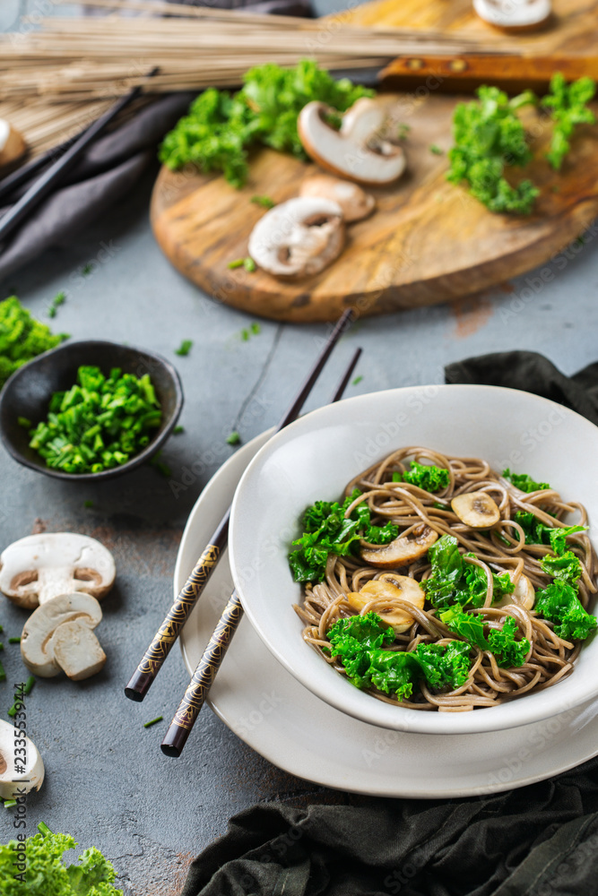 Buckwheat soba noodles soup ingredients for asian chinese japanese food
