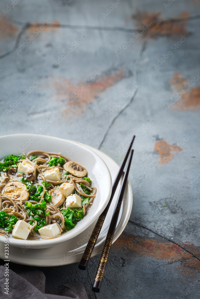 Buckwheat soba noodles soup for asian chinese japanese food
