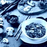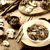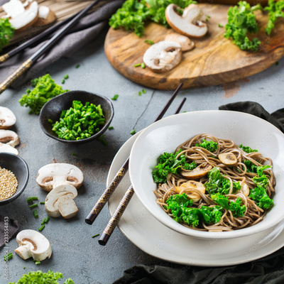 Buckwheat soba noodles soup ingredients for asian chinese japanese food