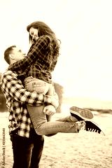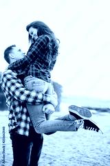 Loving couple embracing on the beach