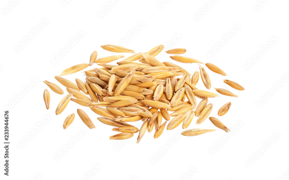 Pile of oat grains isolated on white background