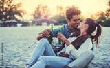 Beautiful young couple having fun on the beach. Lifestyle, love, dating, vacation concept