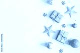 Christmas composition. Christmas gifts, golden decorations on pastel pink background. Flat lay, top view, copy space