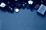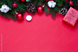 Christmas, New Year red stylish flat lay frame . Winter holiday composition. Top view. Copy space