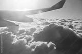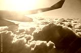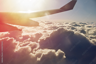 Travel background of plane flying above the clouds