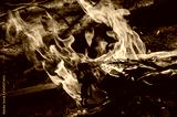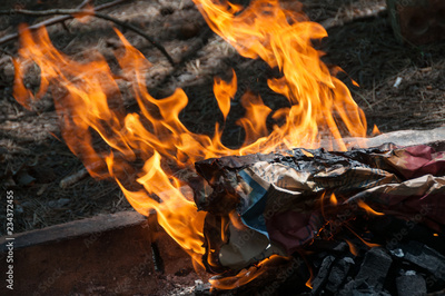 Close up of open flame of campfire, burning timber fire