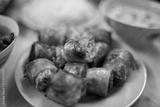 Traditional Vietnamese fried springrolls on a plate. Asian food background