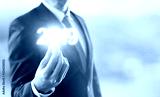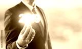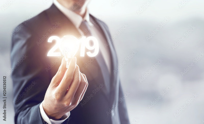 Hand of businessman holding light bulb and number 2019 year, Business idea new year concept. copy space.