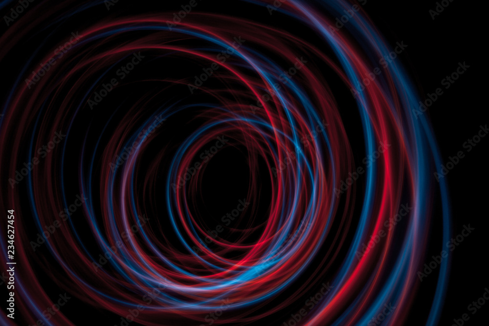 multicolor led light painting round trails abstract background on black