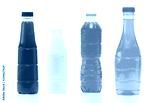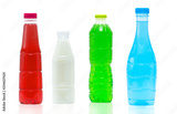 Soft drink in plastic bottle and cap with modern packaging design on white background with blank label. Blue color beverage bottle container. Carbonated drinks plastic bottle for advertising.