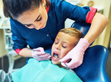 Dentist examining a patient's teeth in the dentist.