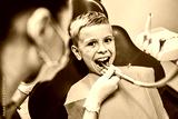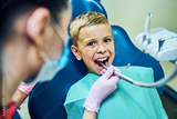 Dentist examining a patient's teeth in the dentist.