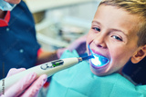 Dentist examining a patient's teeth in the dentist.